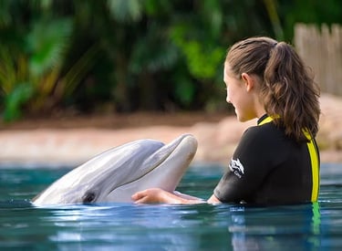 Discovery Cove is an all-inclusive day resort in Orlando offering immersive animal encounters in a tropical setting. Guests can swim with dolphins, snorkel among tropical fish and rays, and hand-feed exotic birds in Explorer’s Aviary. The park also features the Freshwater Oasis with otters and marmosets, the relaxing lagoons of Serenity Bay, and the scenic Wind-Away River. Designed for both adventure and relaxation, Discovery Cove provides a unique and serene experience for all ages.
